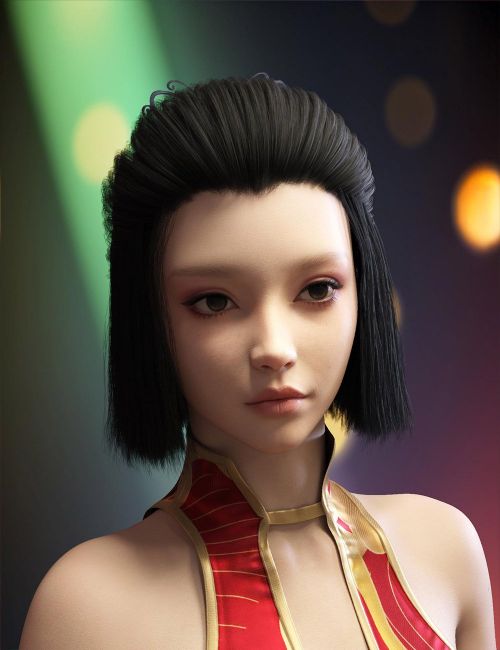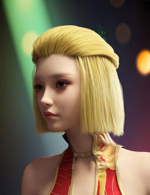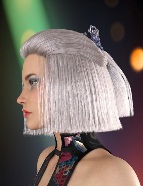 Rune is a straight bob with the top of the hair tied back in a ponytail. It has a classic and elegant style, topped off with a feminine butterfly hairpin. It comes with 24 natural and fanciful hair colors and 10 colors for the hairpin, all as Iray materials.