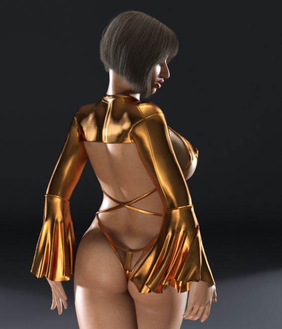 A set of models of a ladies' capri cut chaps (3352 polys) and bell cuff for same (5730 polys), as well as a shrug (2832 polys) and bell cuff (8954 polys), rigged in DAZ Studio for Genesis 8/8.1 Female, intended for use with dForce dynamic cloth simulation. The base chaps and shrug are simple conformers; the cuffs are a conformer that is meant to be simulated with dynamics. Wearable presets load these together or separately as desired. The models load with a basic white satin material, but both are made with "Cloth" and "Trim" surface selections can be used with the shared materials files from any of my swimwear/dress models. Smoothing and Push modifiers are included and set to reasonable defaults.