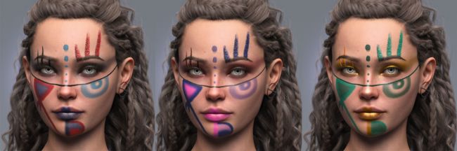 Savage Beauty LIE Makeup for Genesis 9 is a bold and versatile face paint collection inspired by authentic tribal warpaint, ceremonial designs, and battle-ready aesthetics. Perfect for projects requiring a raw, powerful look, each design combines artistry and intensity, featuring sharp lines, natural pigment effects, and symbolic markings that convey strength, heritage, and presence.