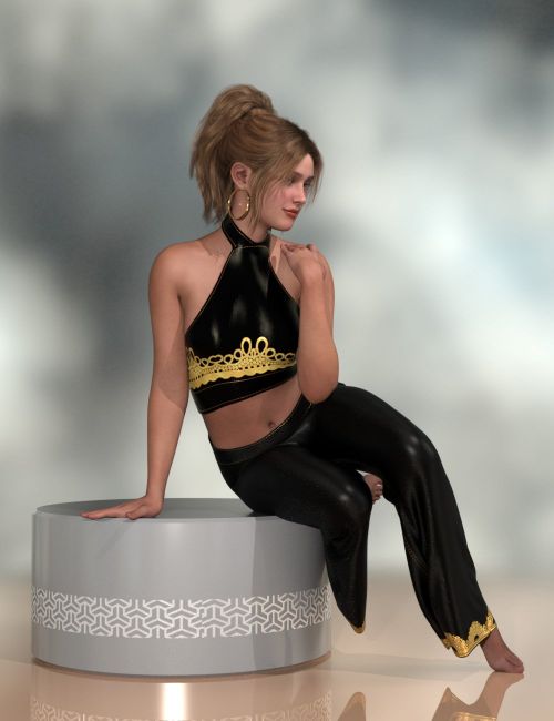 The pants generally behave quite well in the single-frame sim. A handful of fitting morphs are included for both the halter and the pants.