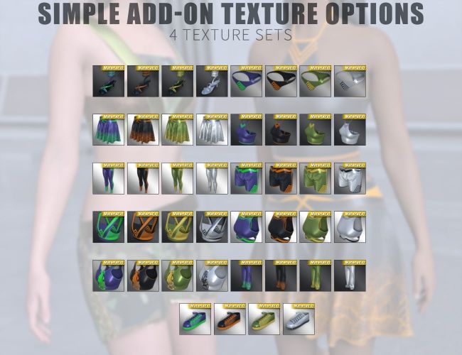11 Full Texture Sets are included to mix and match.