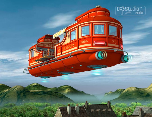 Skyship Avrora is a 3D public transport vehicle made in the steampunk style and equipped with an innovative anti gravitational engine which draws its energy from the zero point of the space. This means it does not require filling and makes the Skyship a completely eco-friendly transport and ideal for urban transport of passengers. The set includes three color variants: blue, red and yellow. Also included are two Pilot poses for Michael 4 and Genesis. Explore!