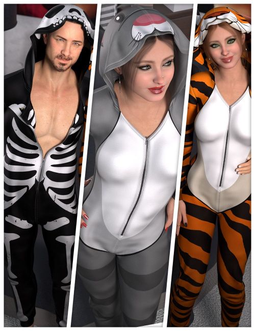 With this pack, you get 14 new fully detailed, high-resolution texture styles for the 4 versions of the Hooded Bodysuit.
