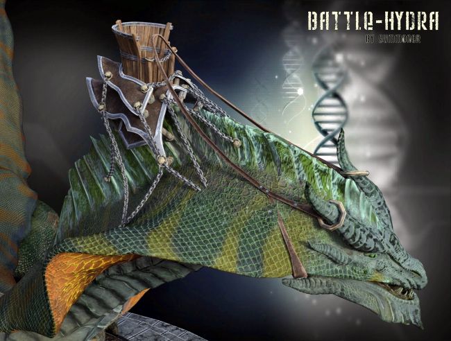 Get ready for fantasy battles with this tamed Hydra fully equipped with tower saddles, a ultimate fantasy weapon. Necks, tail have extended Easy-Pose built in, There are optional material settings to hide the Towers, making the Hydra a untamed Creature.