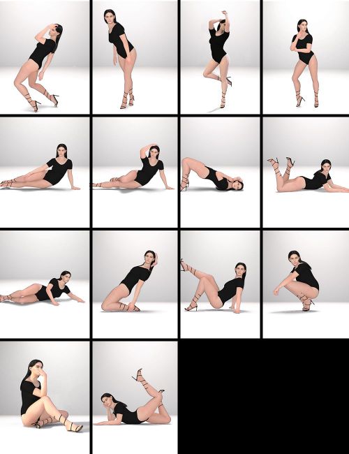 This pose collection includes 30 poses inspired by professional fashion photography and supermodel studio sessions.