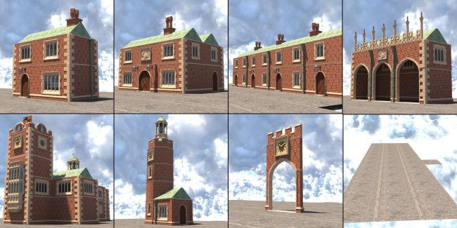 The Tudor Construction Set comprises two main complete scenes – a large palace courtyard and a street scene – together with individual buildings and objects from which you can easily create your buildings and scenes.