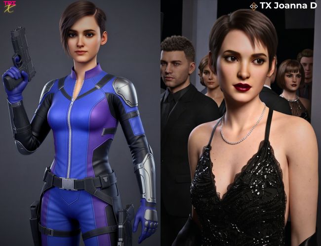 Introducing TX Joanna D, the definitive elite operative for your runtime. She is the perfect fusion of nostalgic espionage style and cutting-edge 3D realism. With a look inspired by the iconic data-thief heroines of the late 90s digital era, and a facial structure reminiscent of cinema's most beloved edgy-yet-vulnerable leading ladies, Joanna D is ready for any high-stakes mission.