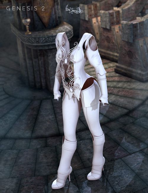 Felicity is an intricate fantasy clothing set for DAZ Genesis 2 Female(s). This six-piece outfit is elegant enough for an elf princess, while still meeting the needs of a battle-ready warrior.