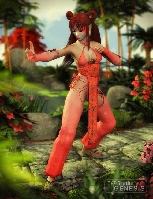 Give Genesis a sexy Eastern look with this attractive four piece ensemble. Whether she's enjoying a cup of tea in the park, performing for her eager fans, or battling a level 10 tentacle monster, your character will be dressed for the part with Flowering Dragon Asian Outfit.