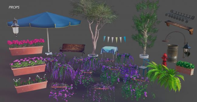 The product includes detached houses, a good number of independent props, and the option to play with emissive materials.