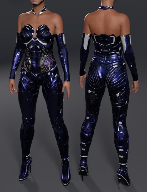 The Virtual Celestial Add-On comes with 6 additional shiny styles for the Virtual Divine Outfit for Genesis 8 and 8.1 Female.