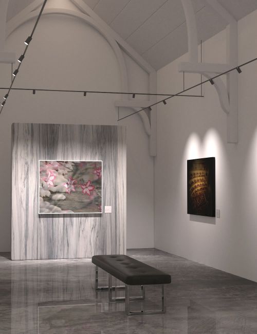 White Arches Art Gallery is a clean canvas for sophisticated renders. Elegant lighting and displays of photography and sculptures that invoke a pleasing interior to behold. A simple Art Gallery with striking arches in the ceiling. Artwork and Sculptures on display on a white canvas interior.