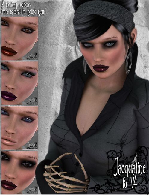 Beautiful detailed textures including a stunning girl next door, to dark and mysterious Gothic inspired make-ups to the deathly beautiful skeleton face texture.