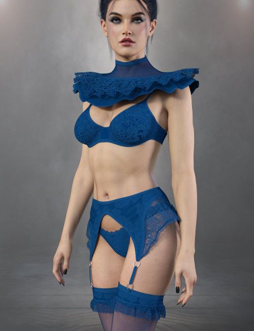 X-Fashion Maitresse Lingerie for Genesis 9 is a new lingerie with a top, collar, garter, bottom, and stockings included in 12 colors.