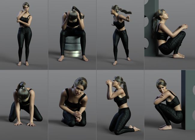 The Z Dark Times Pose Mega Set for Genesis 9 and 8 Female is a powerful collection of distressed poses.