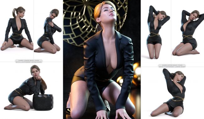 This pose set splits into upper body, lower body, left arm, right arm, left leg, right leg, left hand, right hand, eye, and head pose partials, which can be mixed, matched, and paired with different partials for even more exciting possibilities.